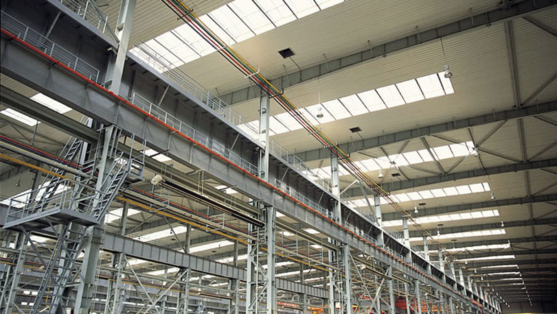 沈陽鼓風機是一家國有大型企業,2004年5月,根據國家振興東北老工業基地的戰略,組建了沈鼓集團。公司位于沈陽市經濟技術開發區,占地面積80萬平方米,工程建筑面積25萬多平方米。沈陽位于中國東北地區南部,屬于溫帶季風氣候,四季分明,冬季寒冷,長大6個月,夏季涼爽,晝夜溫差大。工廠于2005年開始建設,使用寶鋼鍍鋁鋅基板,牌號TDC51D+AZ,涂料品種為SMP,顏色為銀色、海藍做屋面墻面,內墻面使用普通聚酯白灰彩涂
