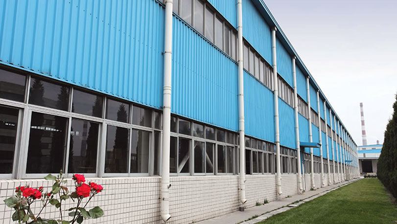 太倉工廠于2001年開始建設。采用寶鋼鍍鋅彩涂鋼板,涂層種類PE,顏色為海藍,牌號為TSt01,鍍層重量180克/平方米。2011年檢測,外墻面涂層厚度20.5微米。