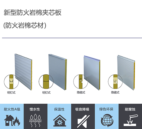 巖棉夾芯板是選用兩層高品質(zhì)的彩涂涂層鋼板或其他精密壓型的金屬板做面板,輥壓成型 后,將分條后的巖棉90度旋轉(zhuǎn)(使其纖維垂直于上下兩層鋼板),通過高強度、高粘結(jié)力、 高防火的粘結(jié)劑,將優(yōu)質(zhì)巖棉與金屬板粘結(jié)、復合而成美觀、平整、剛韌的建筑板材